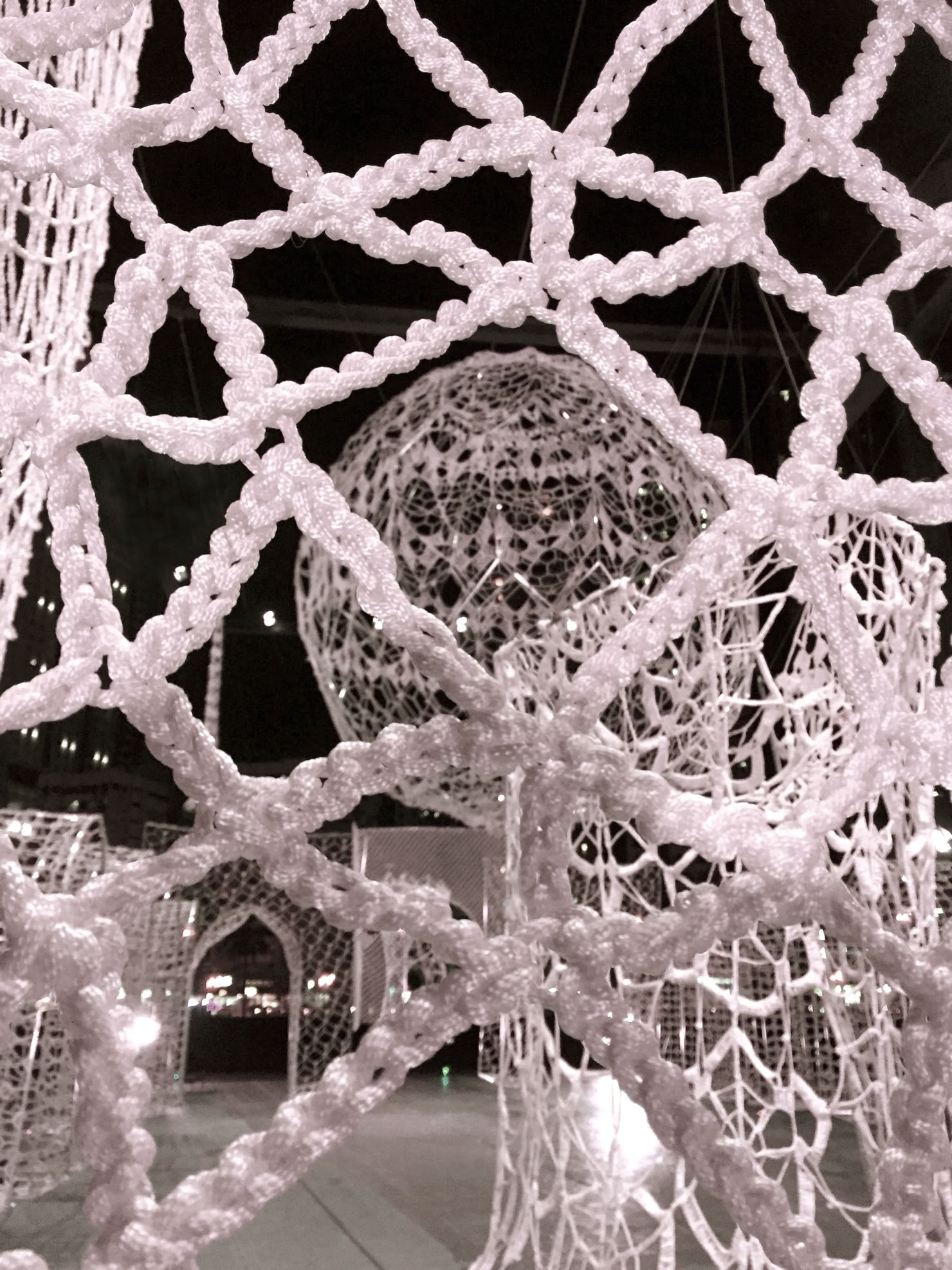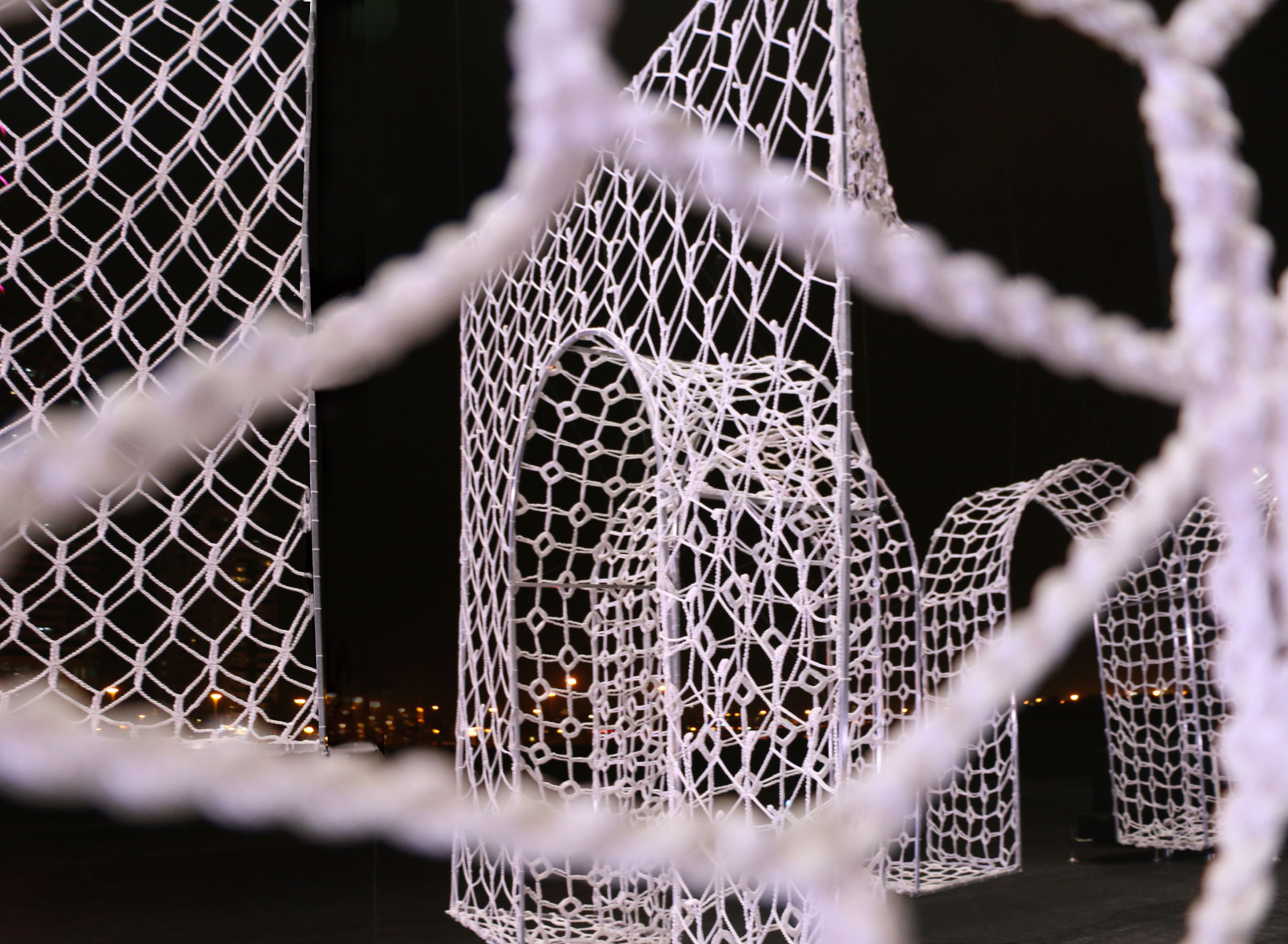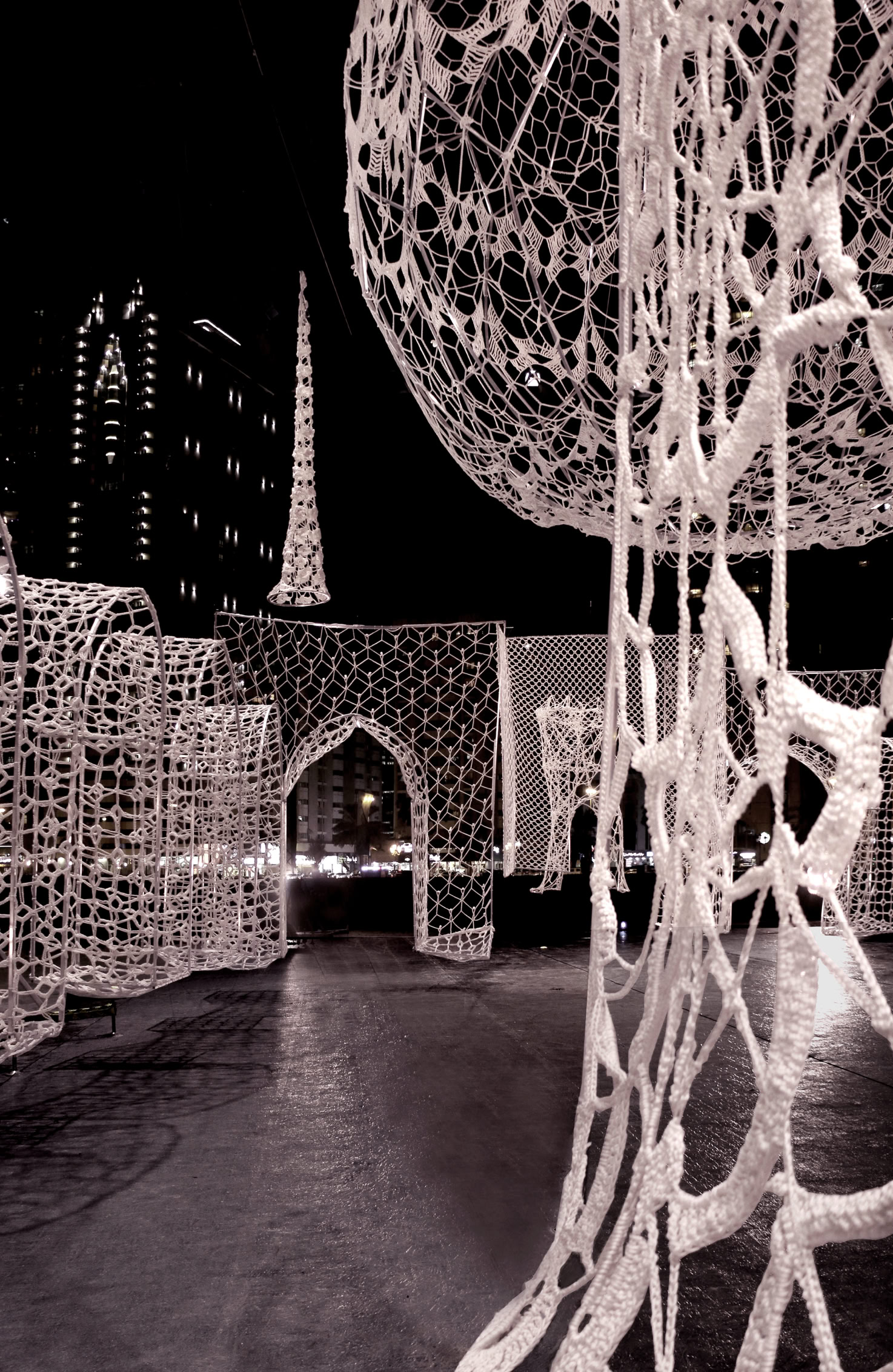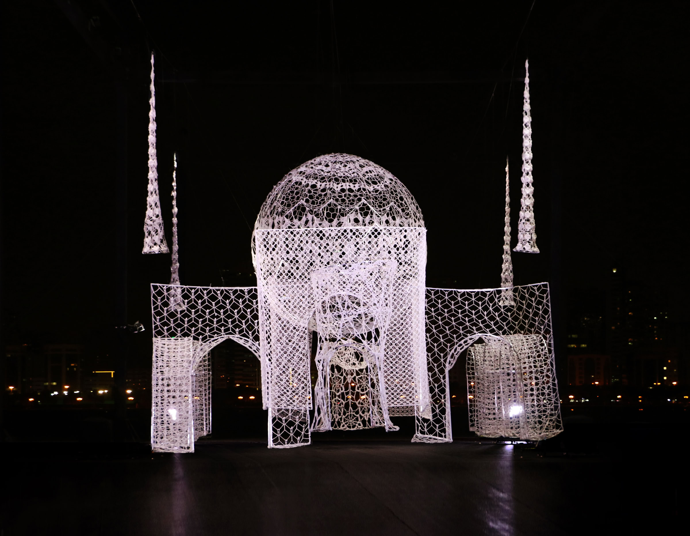 The Flying Mosque lace is crocheted in geometric shapes which uses a cross-culturally universal design language, which is repeated to compose patterns that are used both in the east and the west. However, the use of geometric patterns is exclusive and absolute in this project similar to Islamic architecture, whereas minimalistic approach to the forms and the abstraction of the surface treatment are taken from contemporary western design. This project strives to bridge contemporary and tradition, and diffuse the boundary between the east and west.
