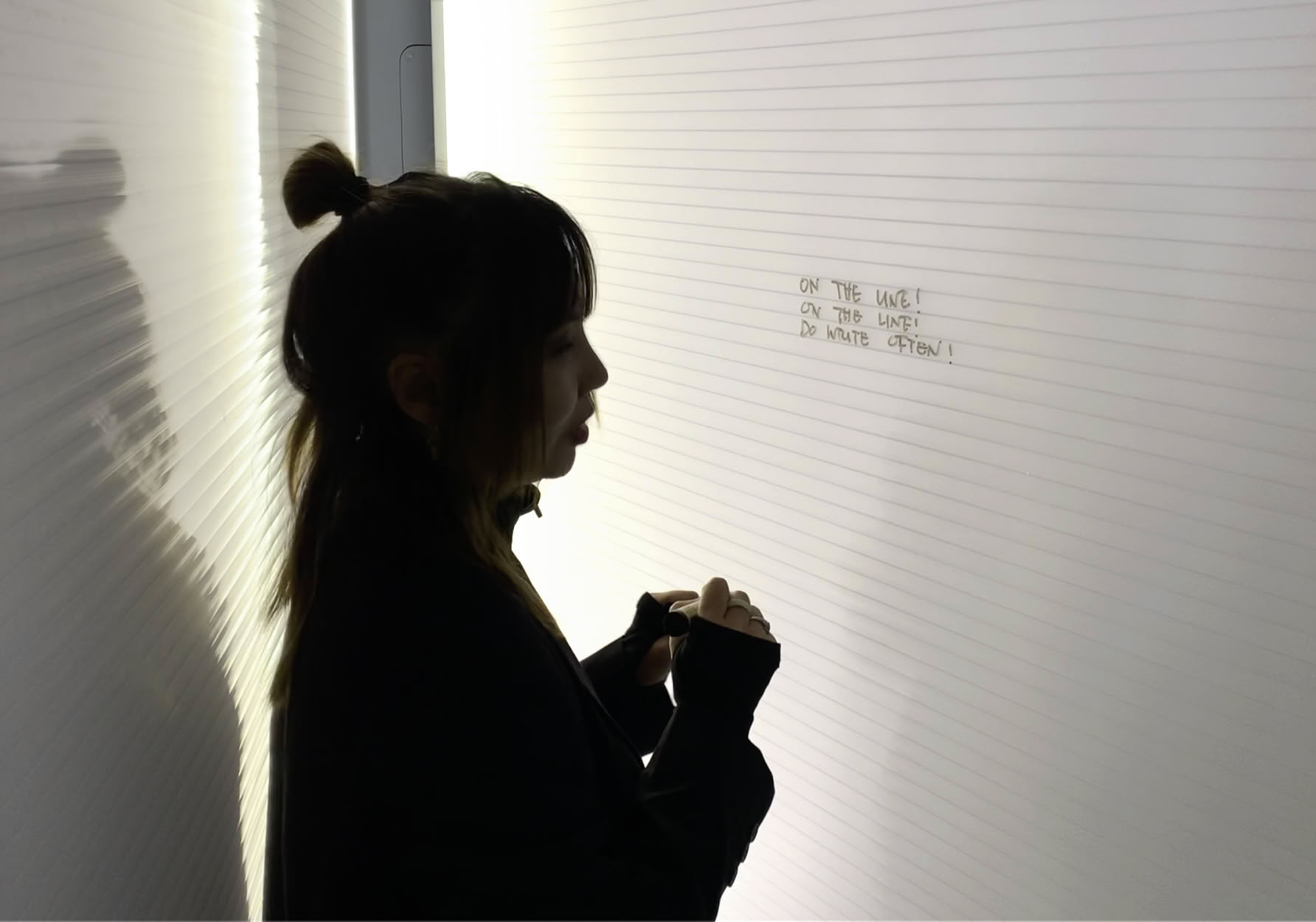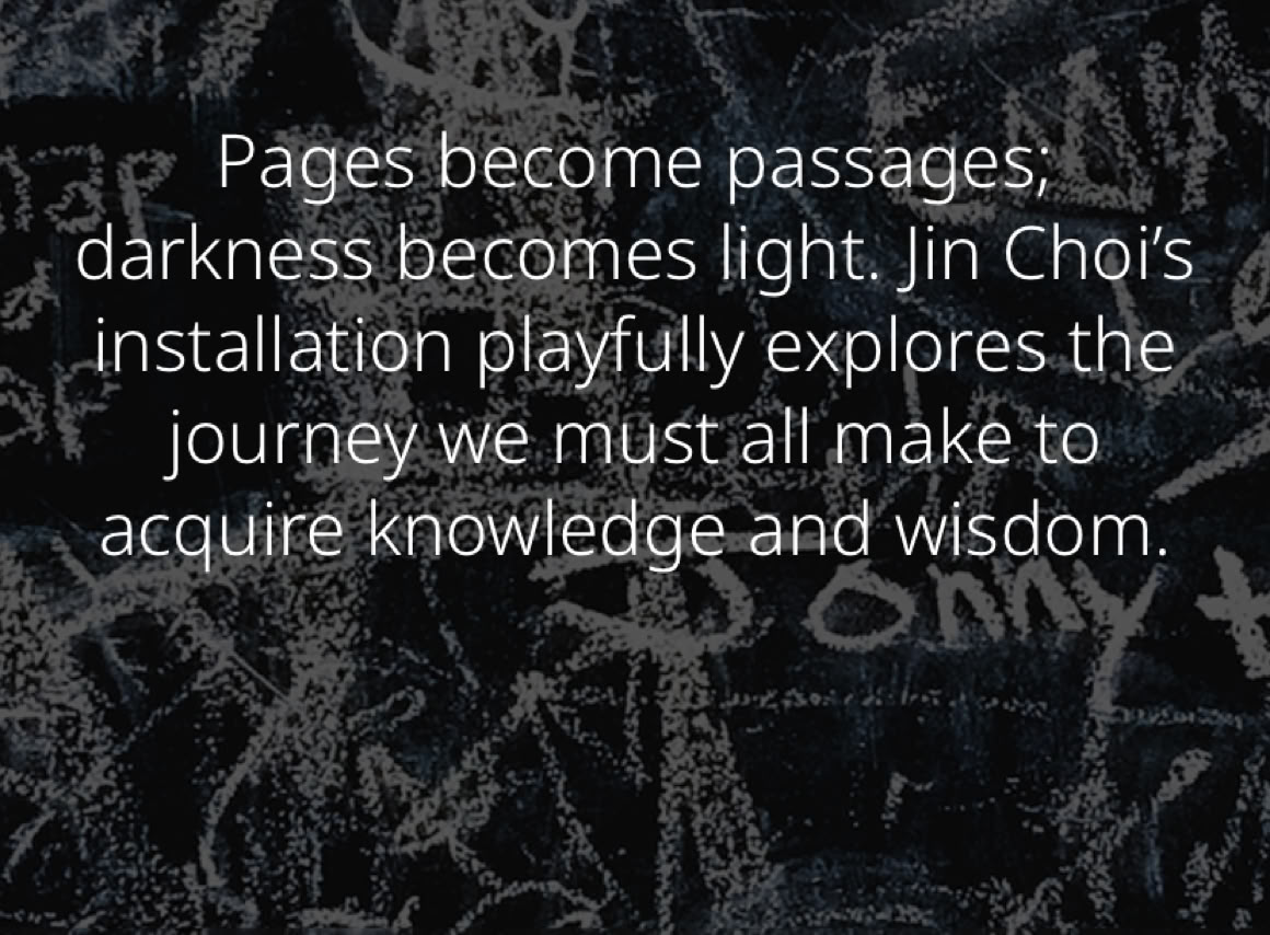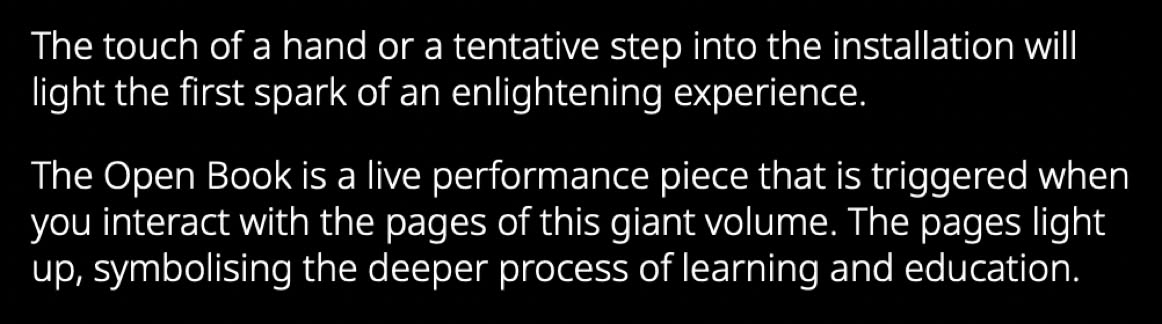 The project pulls you to enter; opening the blank and glowing pages of the book. The touch of a finger on the page prompts the reaction on the book*. Your interaction with the blank page is being communicated. Against glowing blank page, the presence and the interaction of audience are the part of the artwork, being staged as if in a shadow play, as a symbol of an illuminating book open to everyone to be enlightened.