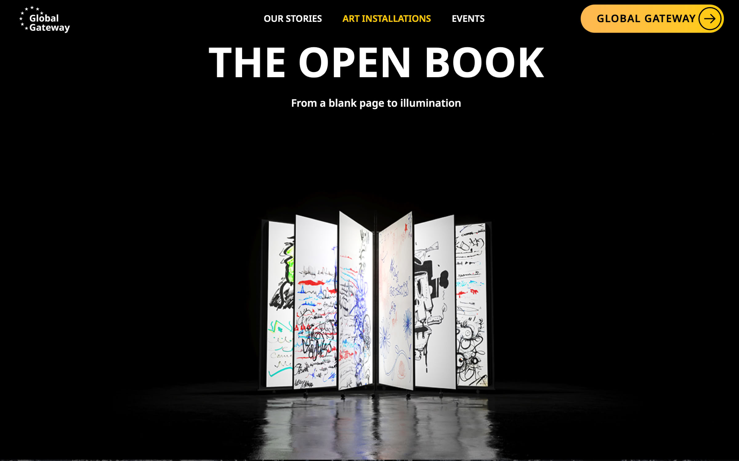 Anyone can enter and open the glowing pages. The very act of opening the book, our engagement in making a difference is an important part of the message of the project.