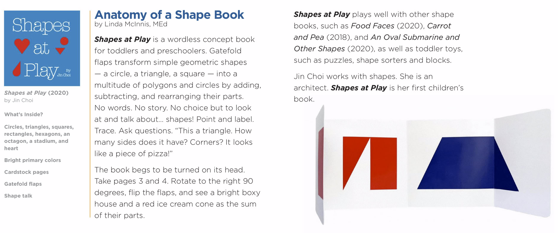 Shapes at Play is a comparative and transformative shape book for first readers without words. The books is designed to be culturally neural and free from any linguistic boundaries.