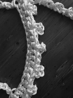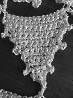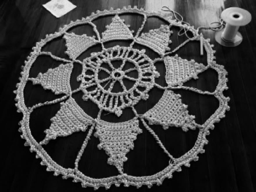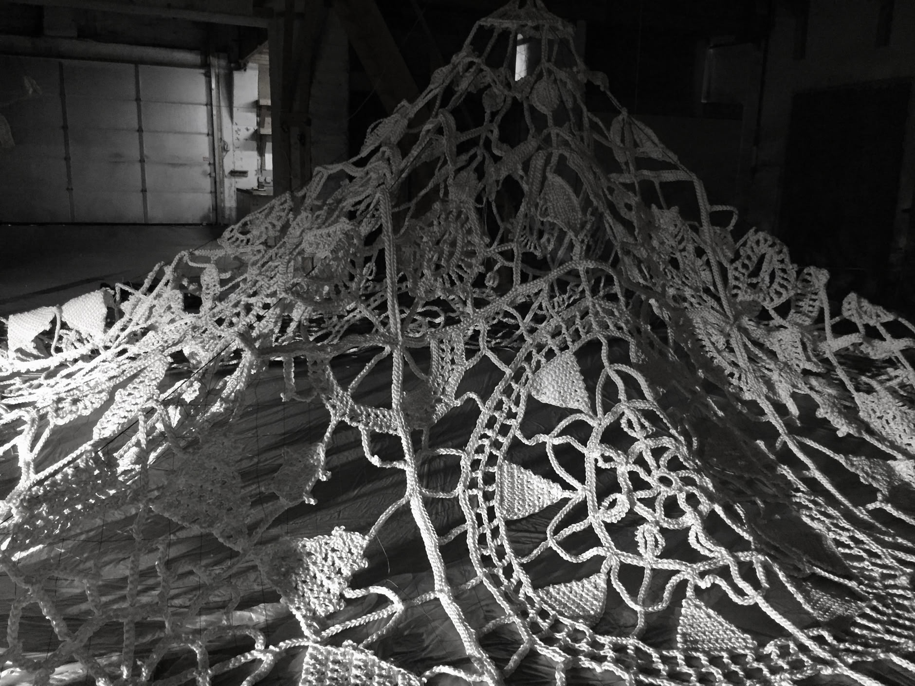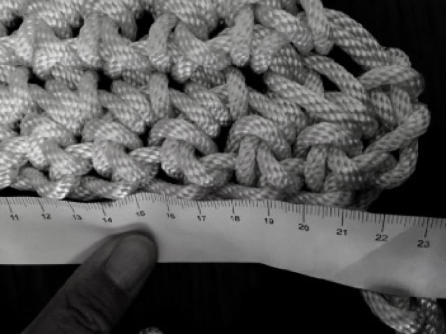 The task was to find a method that would allow us to make a large scale lace motif with a continuous yarn, without cutting, to maximize the strength of the finished work. Crochet seems to be the most promising method that could simulate the needle made lace while maintaining the durability of the weave.