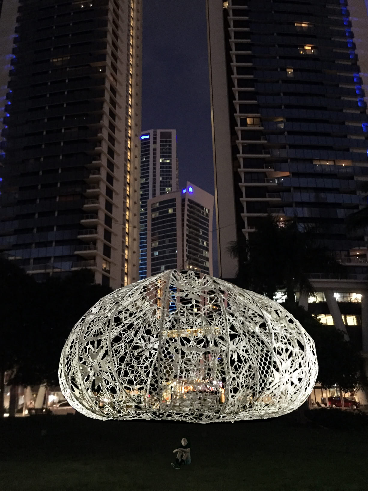 Seeing hovering and glowing lacy objects against majestic skyscrapers and dark water makes the viewers pause and gaze. This momentary pause of the mundane routine of our life give us an opportunity to find the poetry around us.