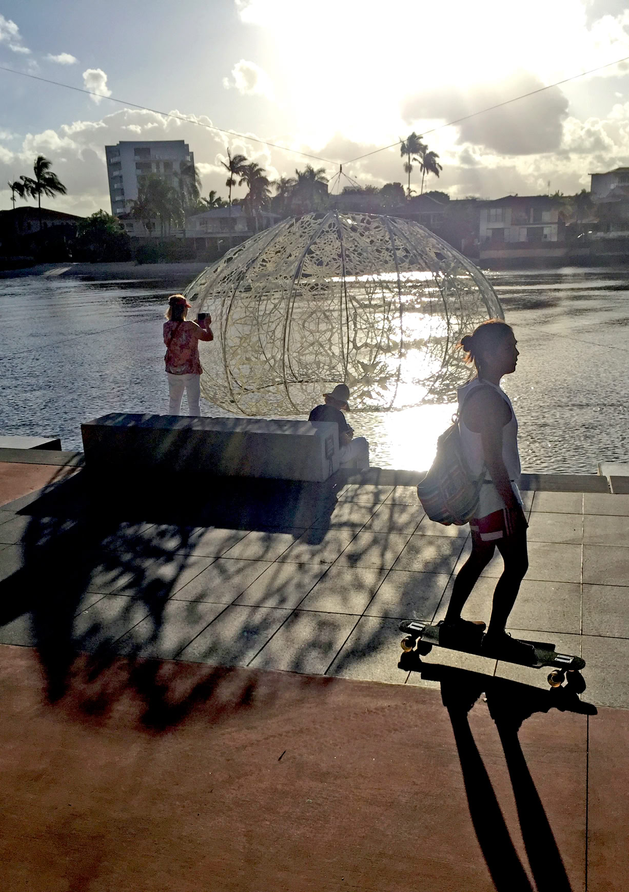 Placed in Appel park and near the canal, it creates a shelter from the hot sun during the day with its pendulum like movement that sways with the breeze.