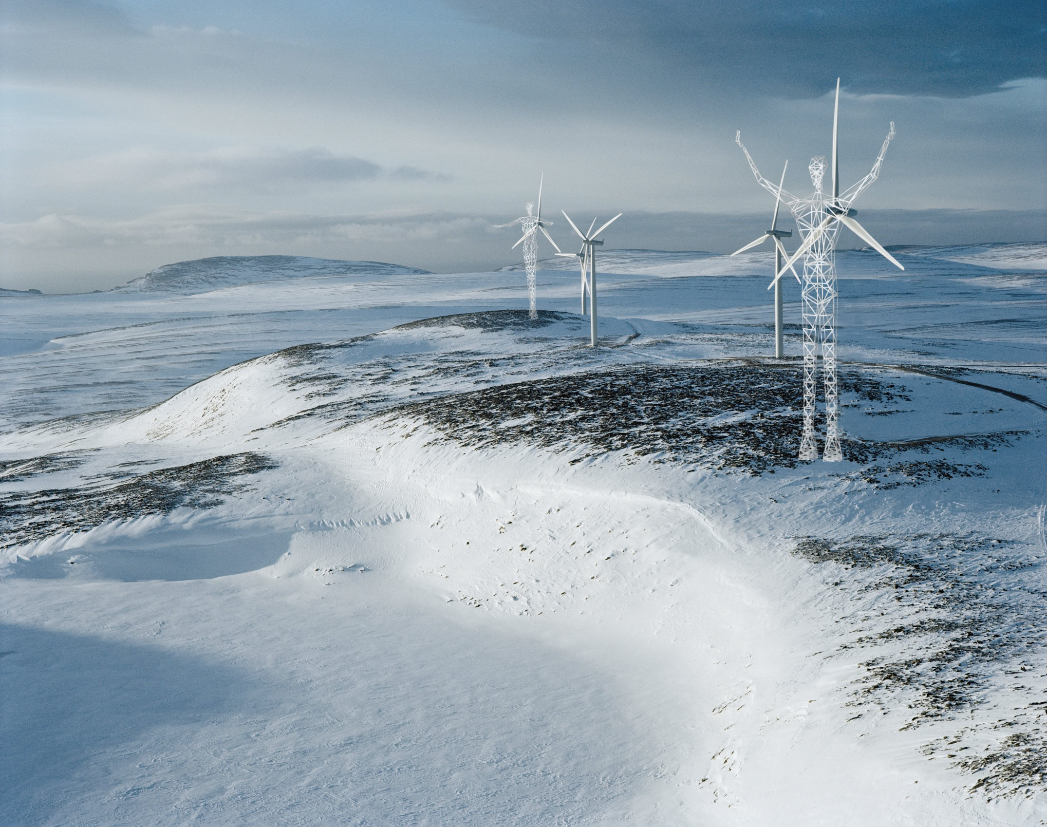 The Giants of The Wind creates iconic, graceful structure befitting the soft movement of wind turbines, transforming mundane infrastructures into kinetic sculptures on the landscape. Wind is a growing source of green energy. However, wind turbines are becoming excessively dominant on the landscape as their size and numbers increase. Rather than locating wind turbines out of sight, this project creates landmark, transforming the sites into destinations.