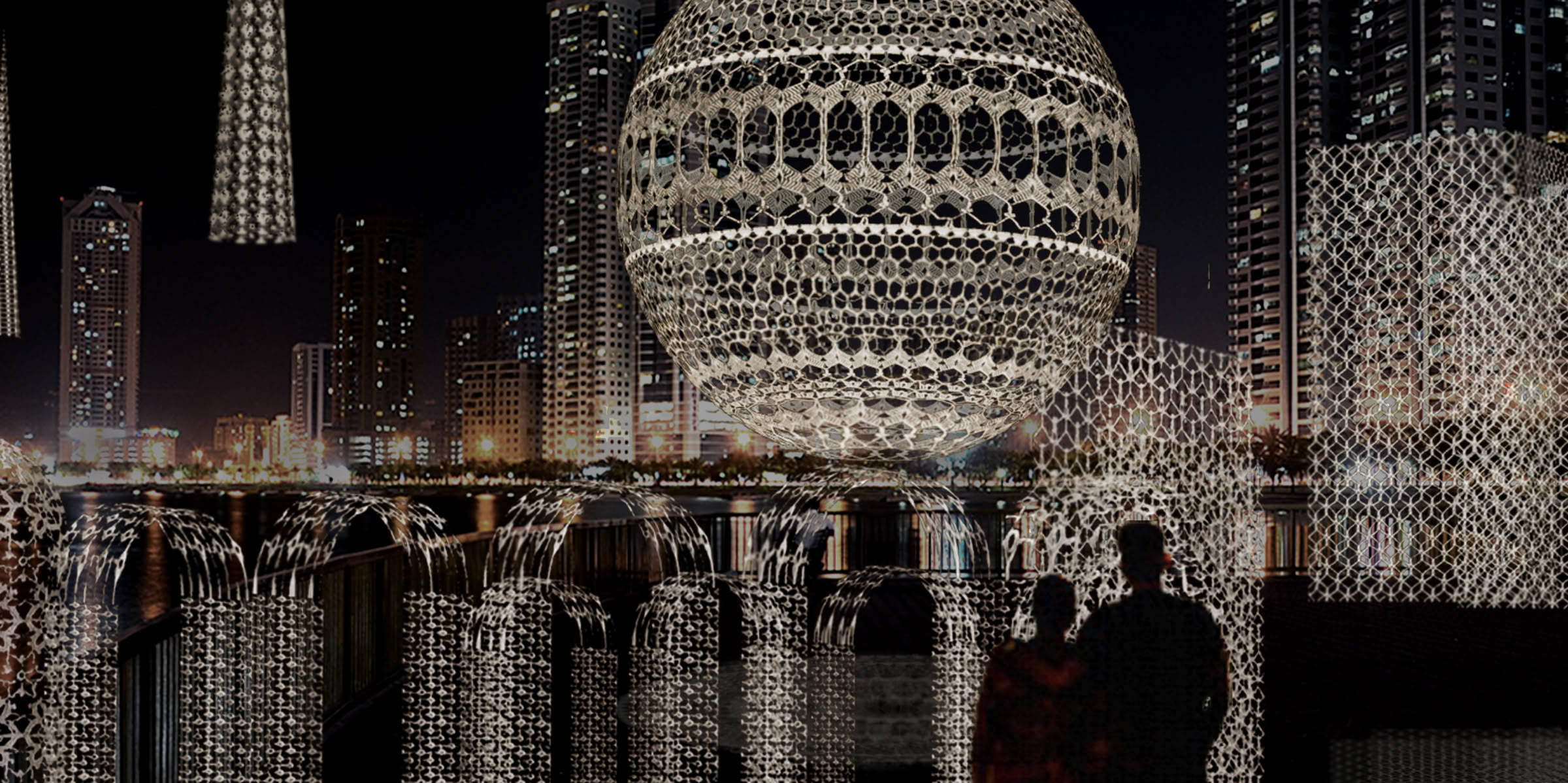 Seeing the glowing and hovering large lace forms against majestic skyscrapers and dark water creates a sense of magic as if time has stopped, which makes the viewers halt and gaze. This momentary pause of the mundane routine of our life would hopefully give us an opportunity to find the poetry around us.