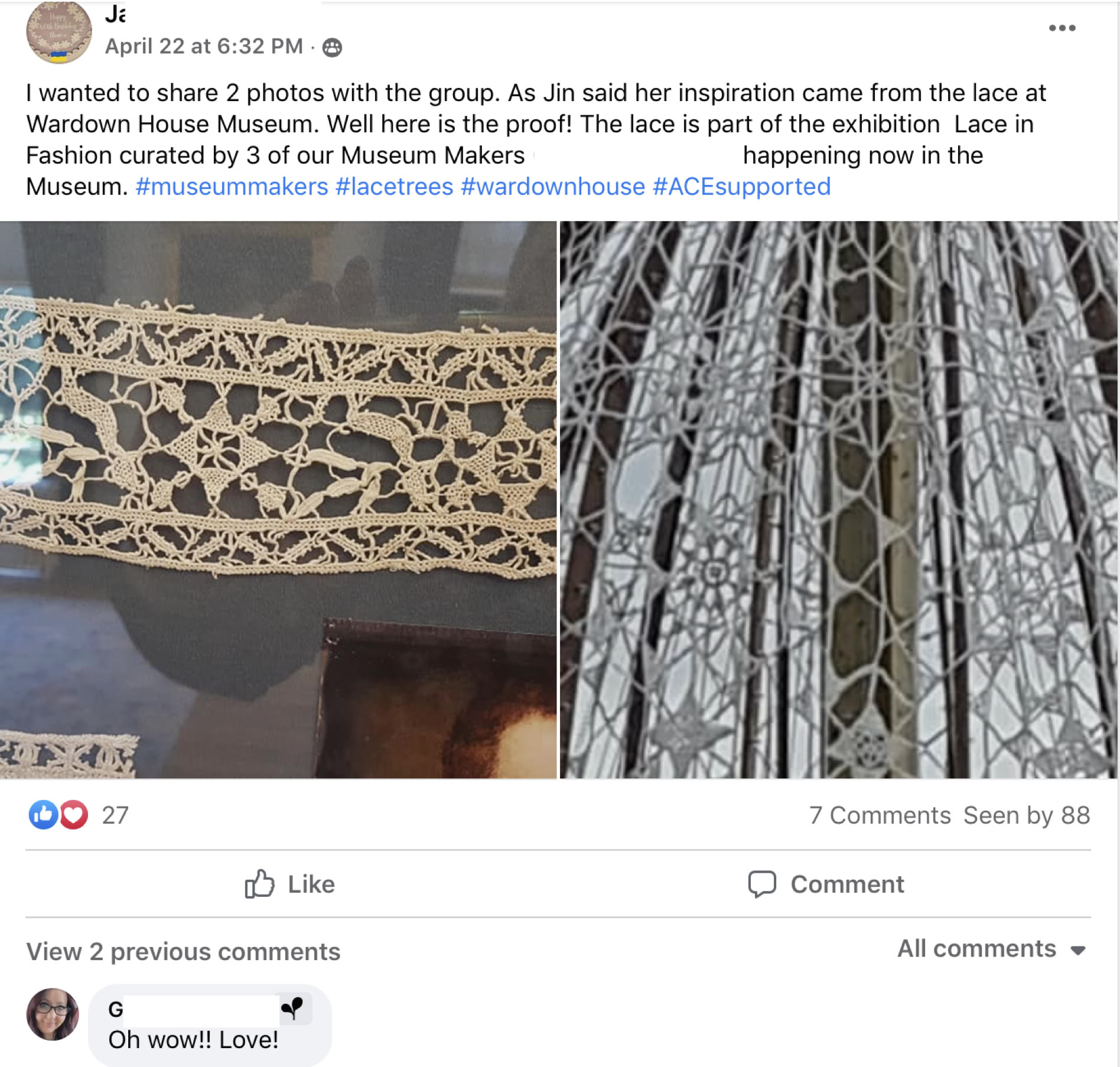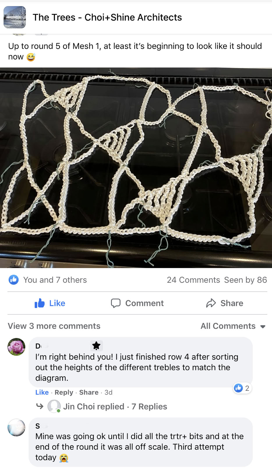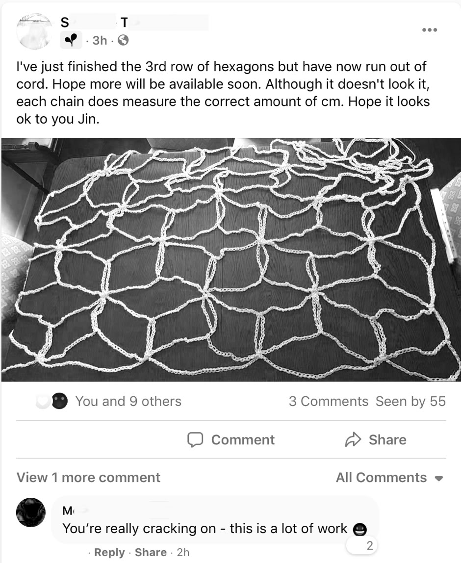 “I have to be honest and say I did not find the crochet straightforward because I didn’t understand it and spent many hours unpicking and redoing, but I can say that on the day we handed the finished work in, it was with both relief and a sort of sadness. I missed it. How I wish I could re-do the work as I am sure I would be able to make a better job of it now.