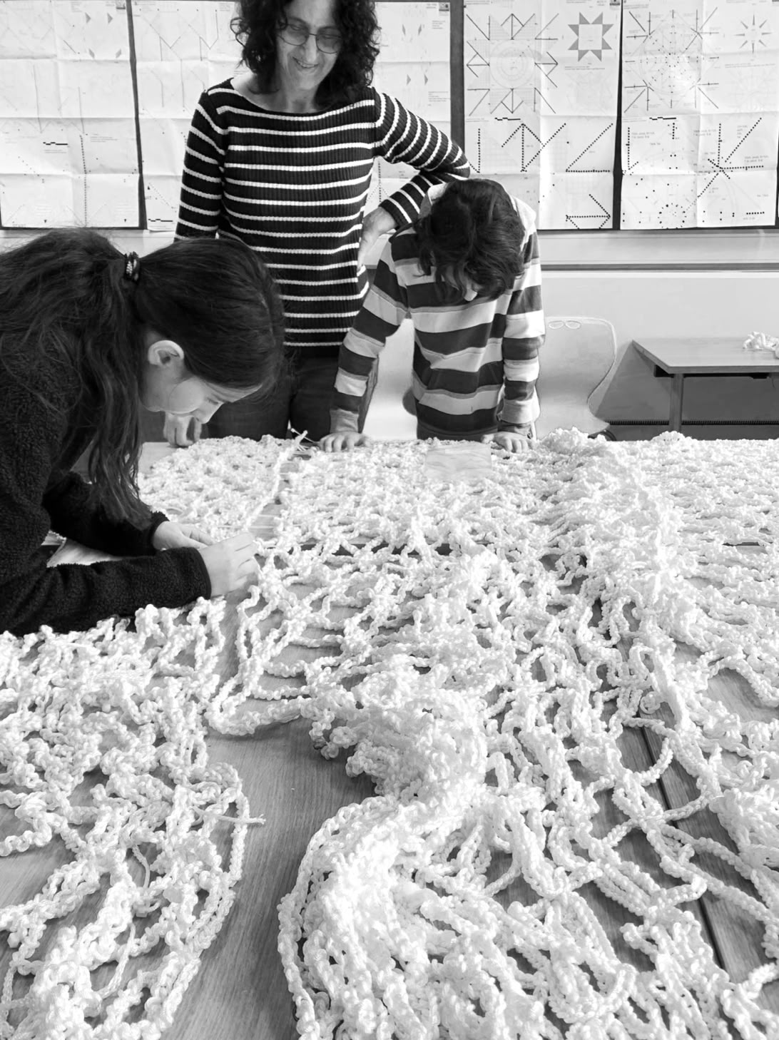 With the help of Museum Makers, the project called for local volunteers, first to crochet segments of the Trees, then to sew the crochet pieces together. While crocheting, the volunteers posted their progress to the dedicated social media webpage, sharing their work and communicating with each other. Through the virtual and real time interaction and collaboration, everyone shared their crochet progress, checking if they are following the detailed instructions and patterns created by the artist. Once all the lace pieces were crocheted, local volunteers worked together in person to join the crocheted pieces forming large segments, ready for installation. Through the process, the volunteers bonded closely and created a true sense of community, while everyone shared ownership of the work to achieve a single goal: to create a beautiful work together. Skills learned from generations before connected us with the memories from the past and also with the people from the area whom we have never known.